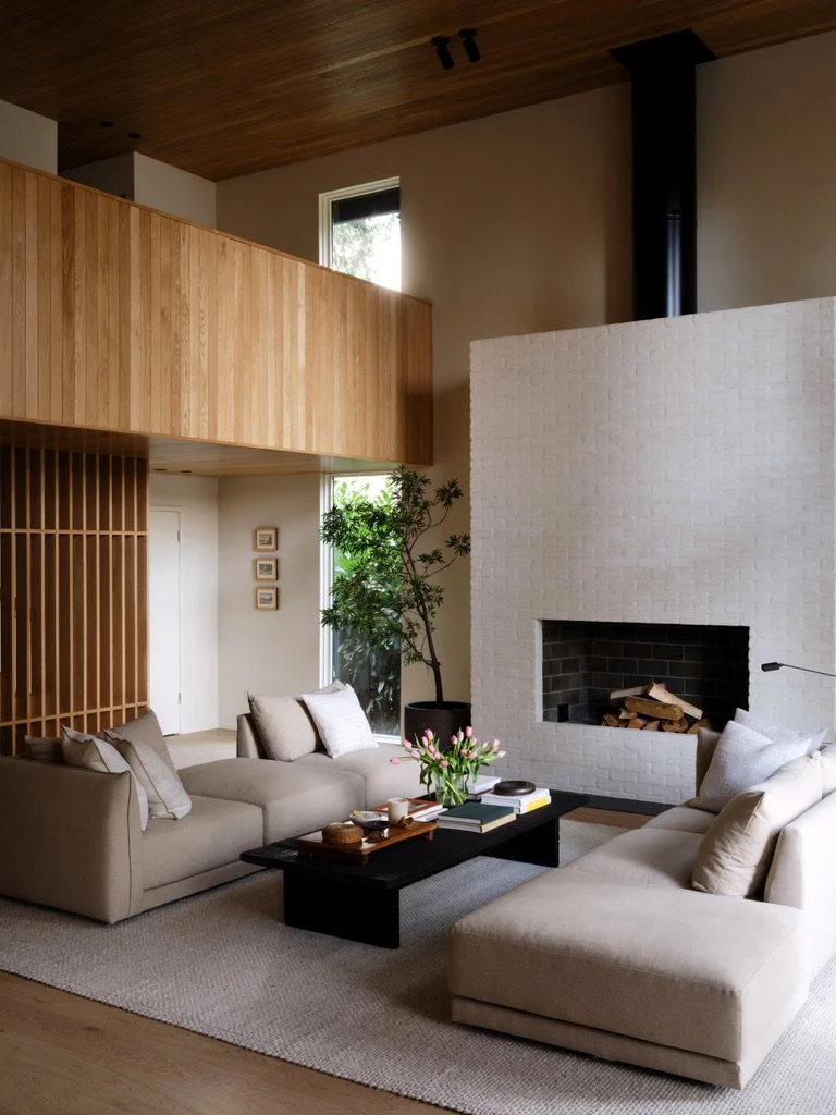 Custom 14’ Tall White Oak Screen Wall with Integrated Staircase